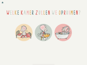 Muis maakt er af en toe een rommel van, de kinderen kunnen Muis helpen met opruimen. Je kan kiezen uit verschillende kamers. Daarna moet je alle spulletjes terug weer netjes op hun plek leggen. Een uitdagend en leerzaam spelletje waarin kinderen onder andere leren verbanden te leggen en ervaren dat opruimen een voldaan gevoel geeft.